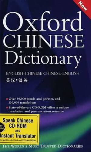 An essential reference both for English-speakers learning Chinese and Chinese-speakers learning English, this brand new Oxford Chinese Dictionary offers authoritative, up-to-the-minute coverage, with over 88,000 words and phrases, and 130,000 translations in a practical format. The Dictionary's clear layout makes it accessible and straightforward to use, and a detailed index system of radicals helps you find the entry you need quickly and easily. Chinese simplified characters, orthodox characters, and pinyin forms are given for each. Putonghua tones are included. The Dictionary has also been updated to include the very latest vocabulary, including bioterrorism, e-shopping, WAP phone, domain name, and SARS. The CD-ROM offers an essential and quick reference tool, eliminating the multi-stage look-up process in the print dictionary. The CD contains character recognition and audio pronunciations for 22,000 single-characters.